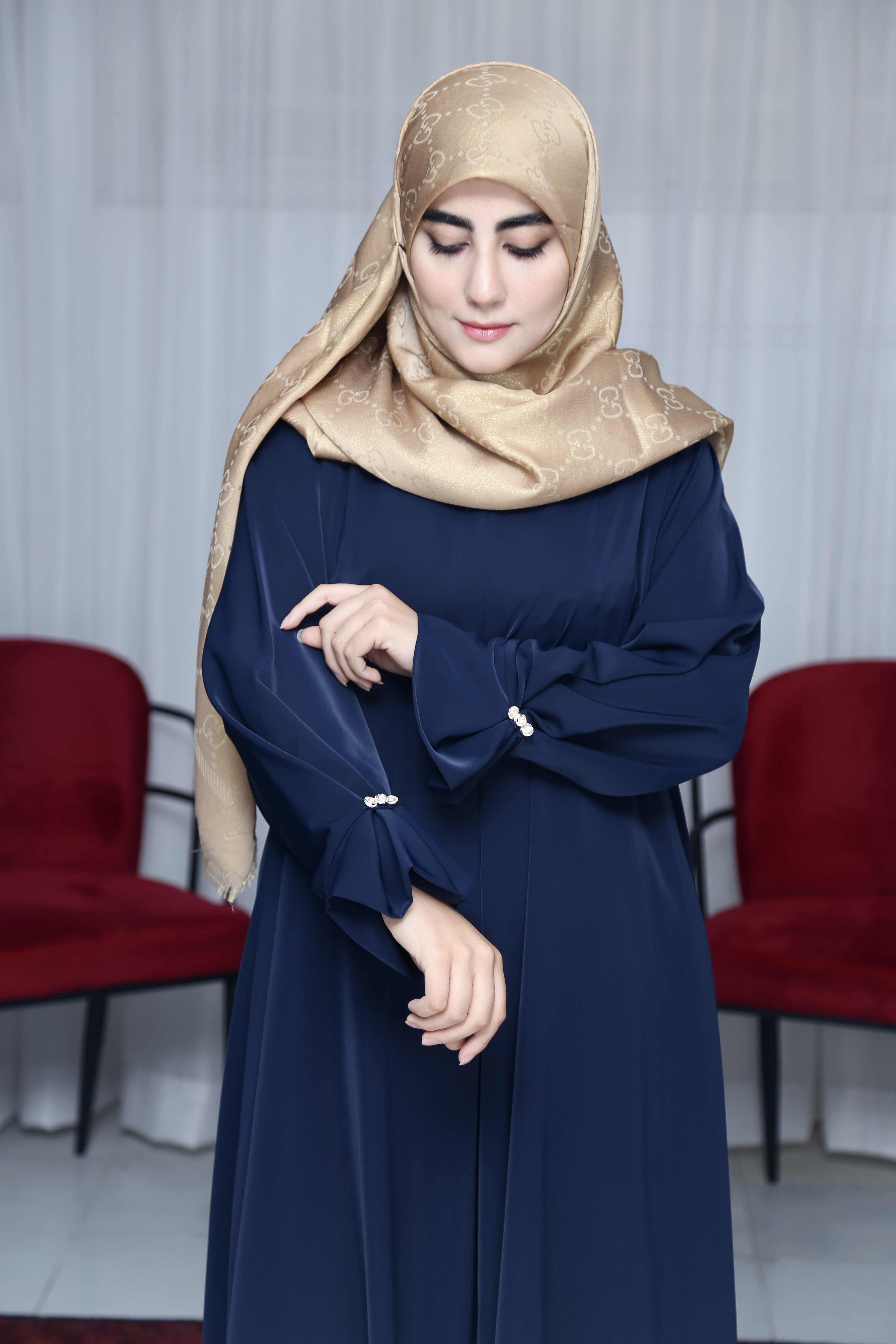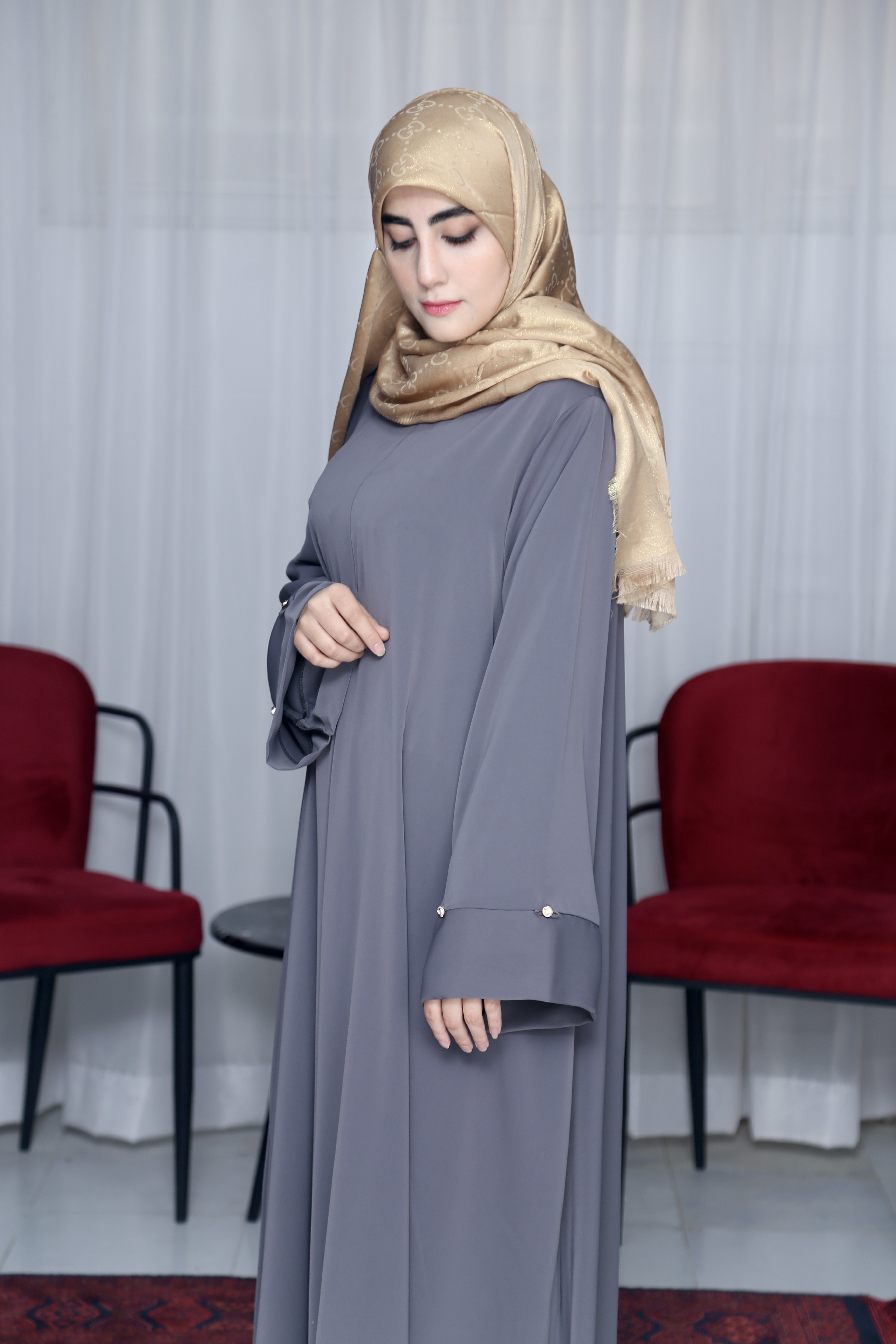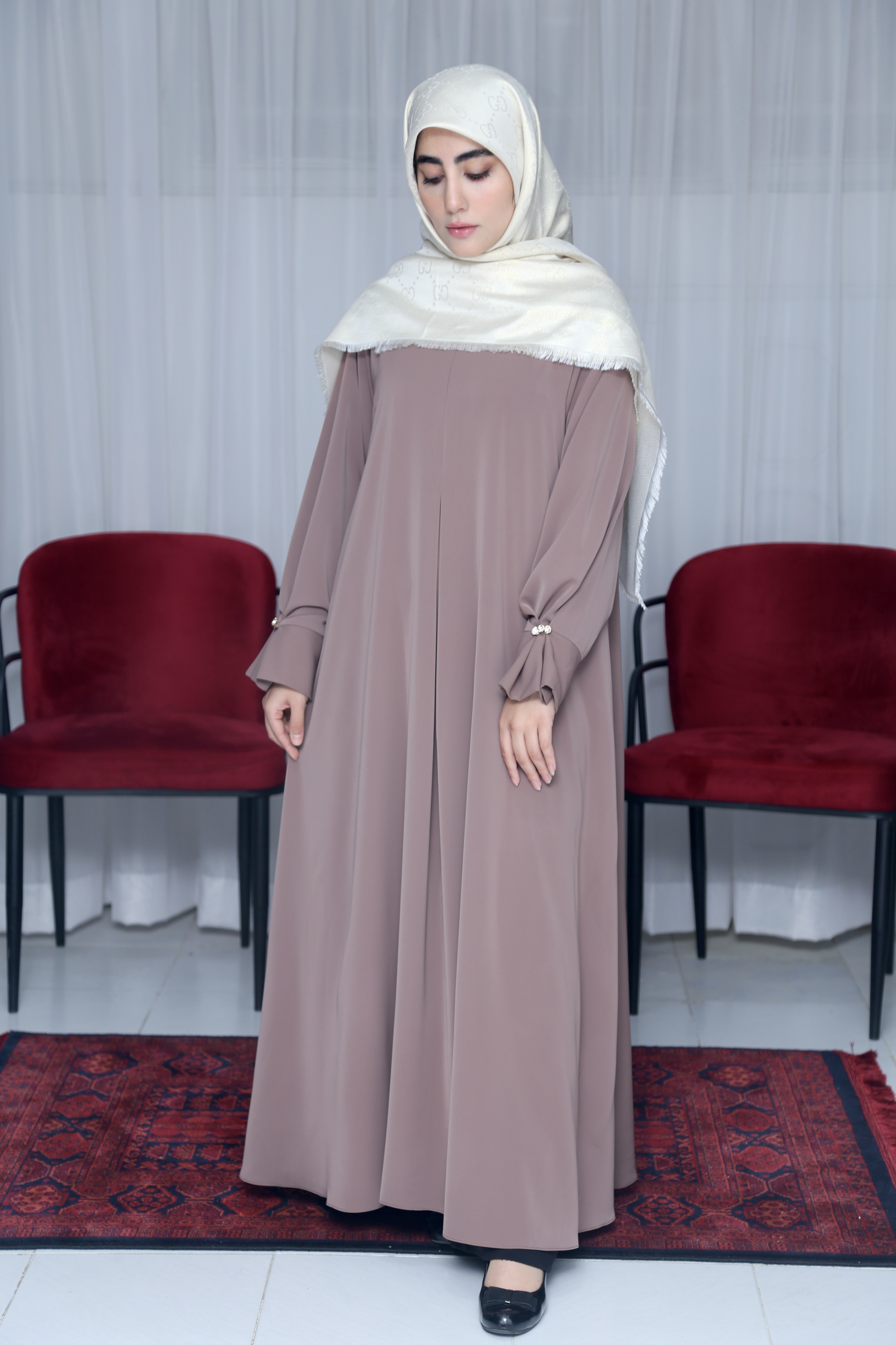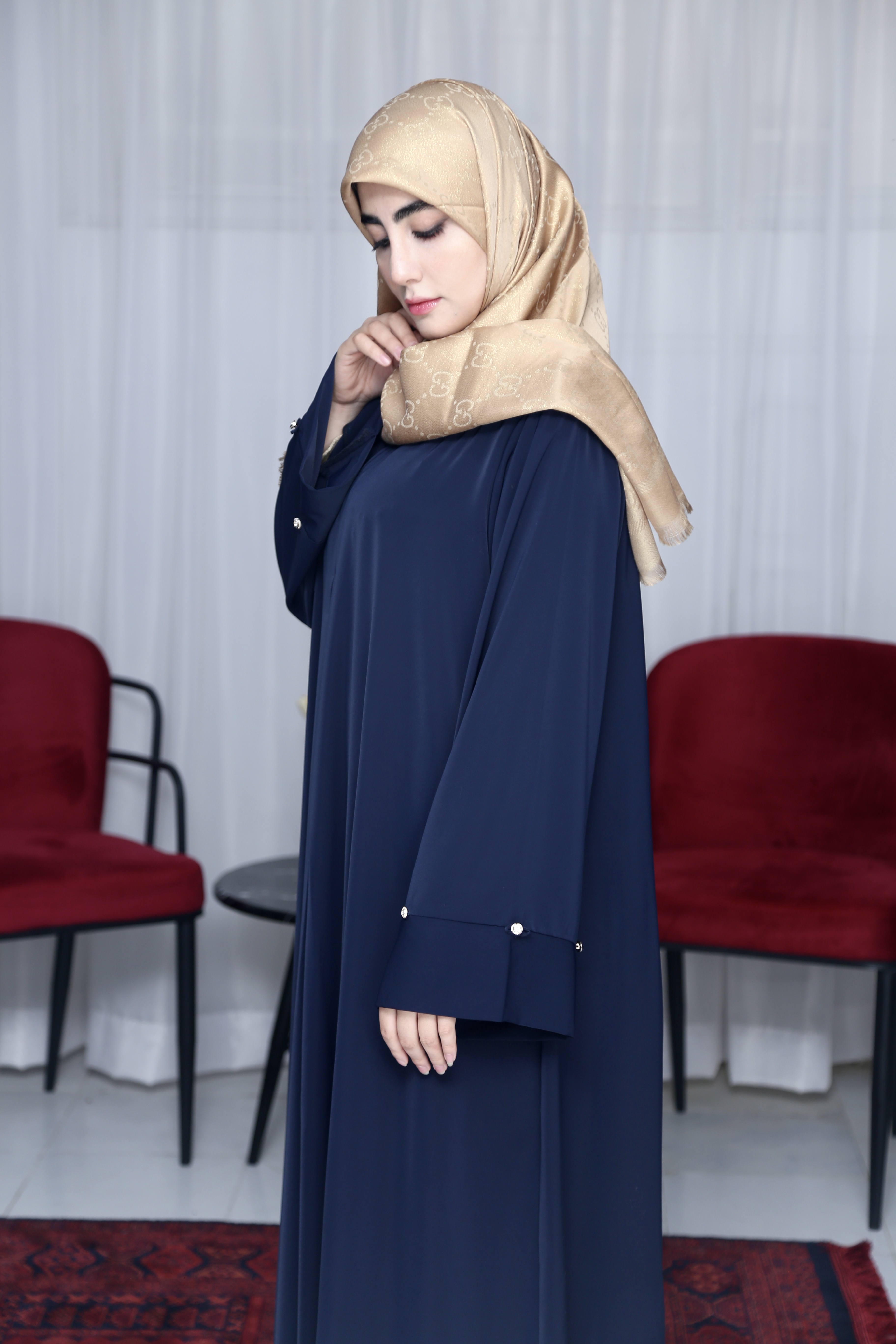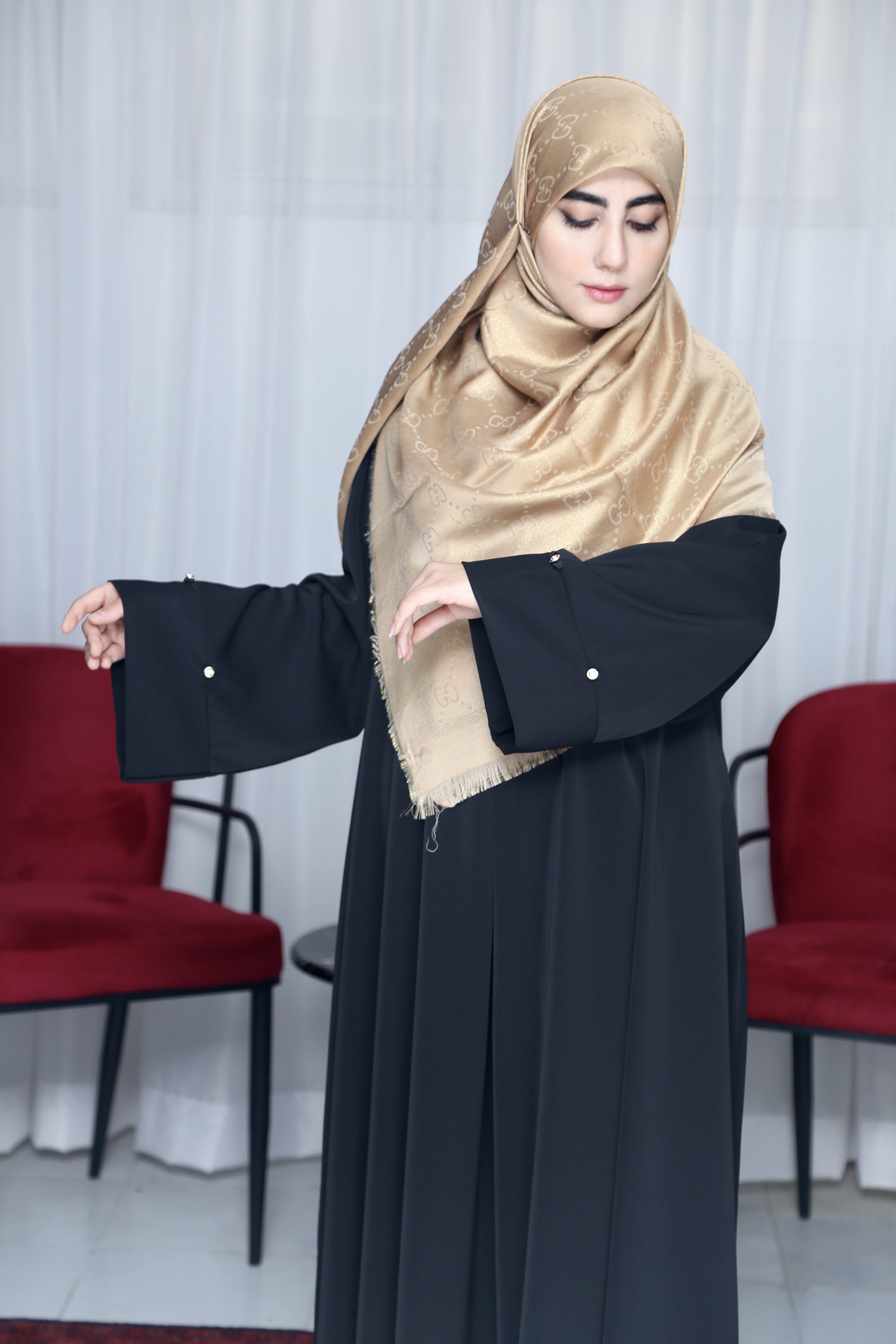 عبا ایده « انحصاری محیا حجاب » پارچه کرپ ژاکلین عبا رو به دو مدل میشه پوشید: ۱- آستین کلوش ۲- با جمع کردن دکمه ها آستین مچ میشه فری سایز تا ۴۸