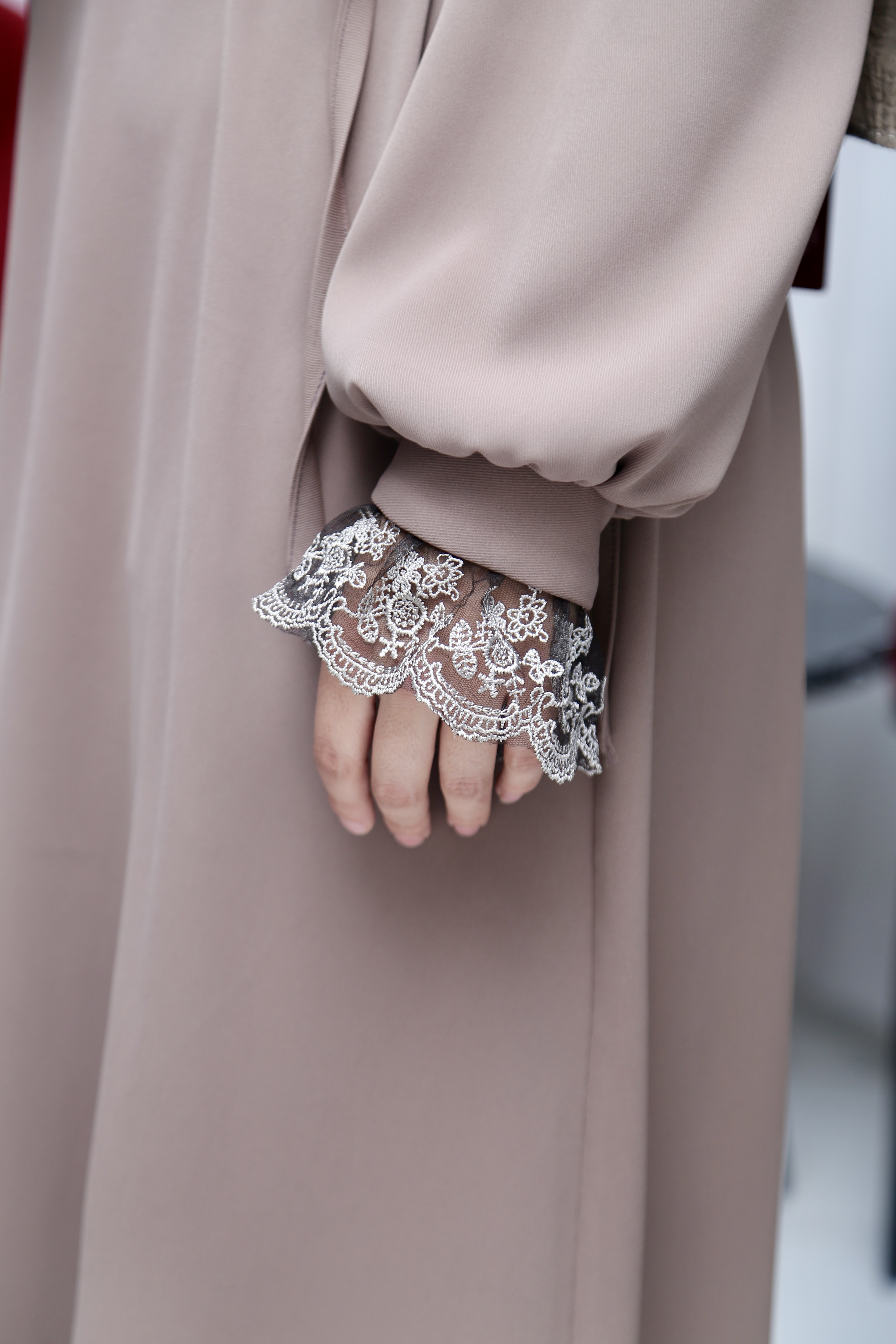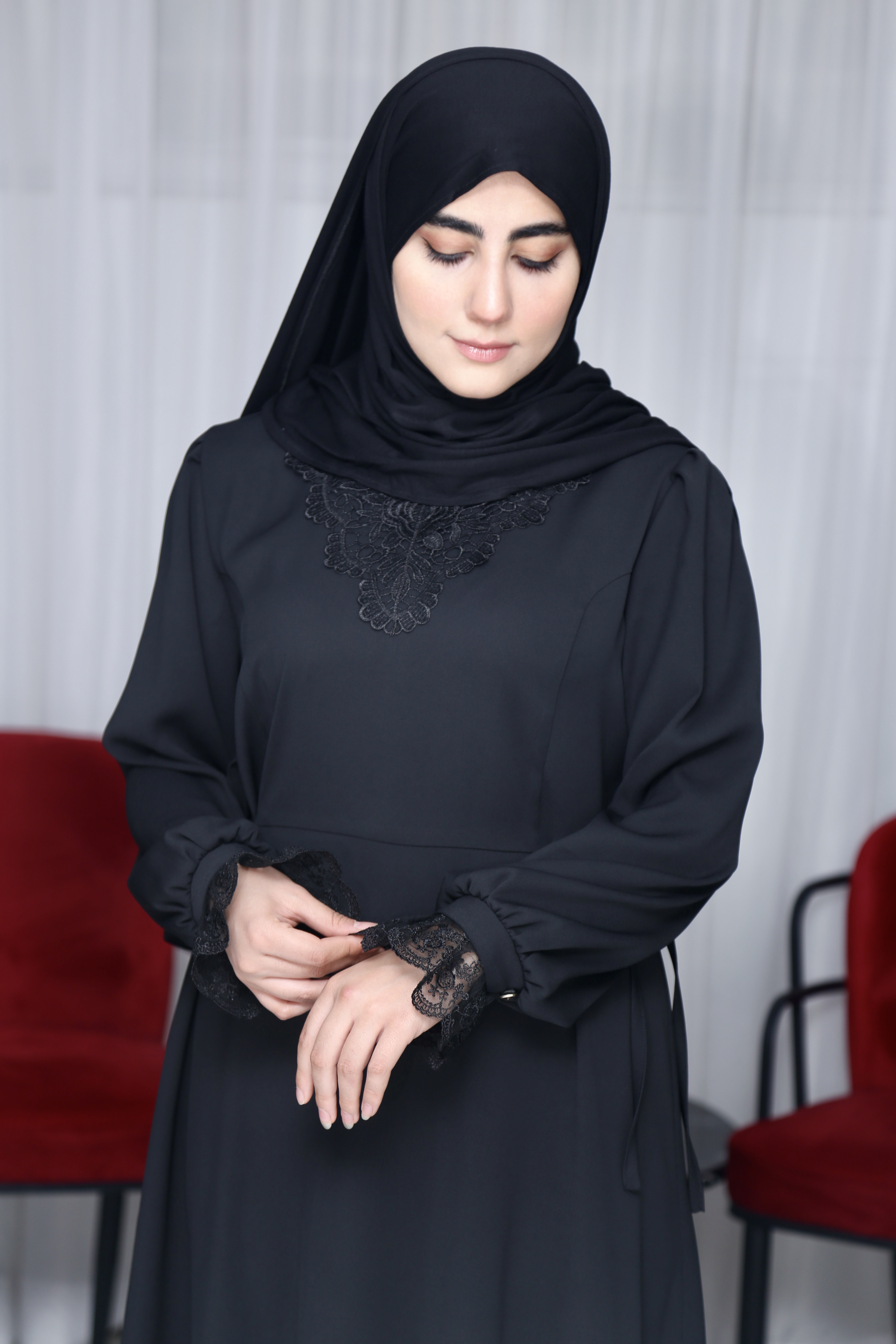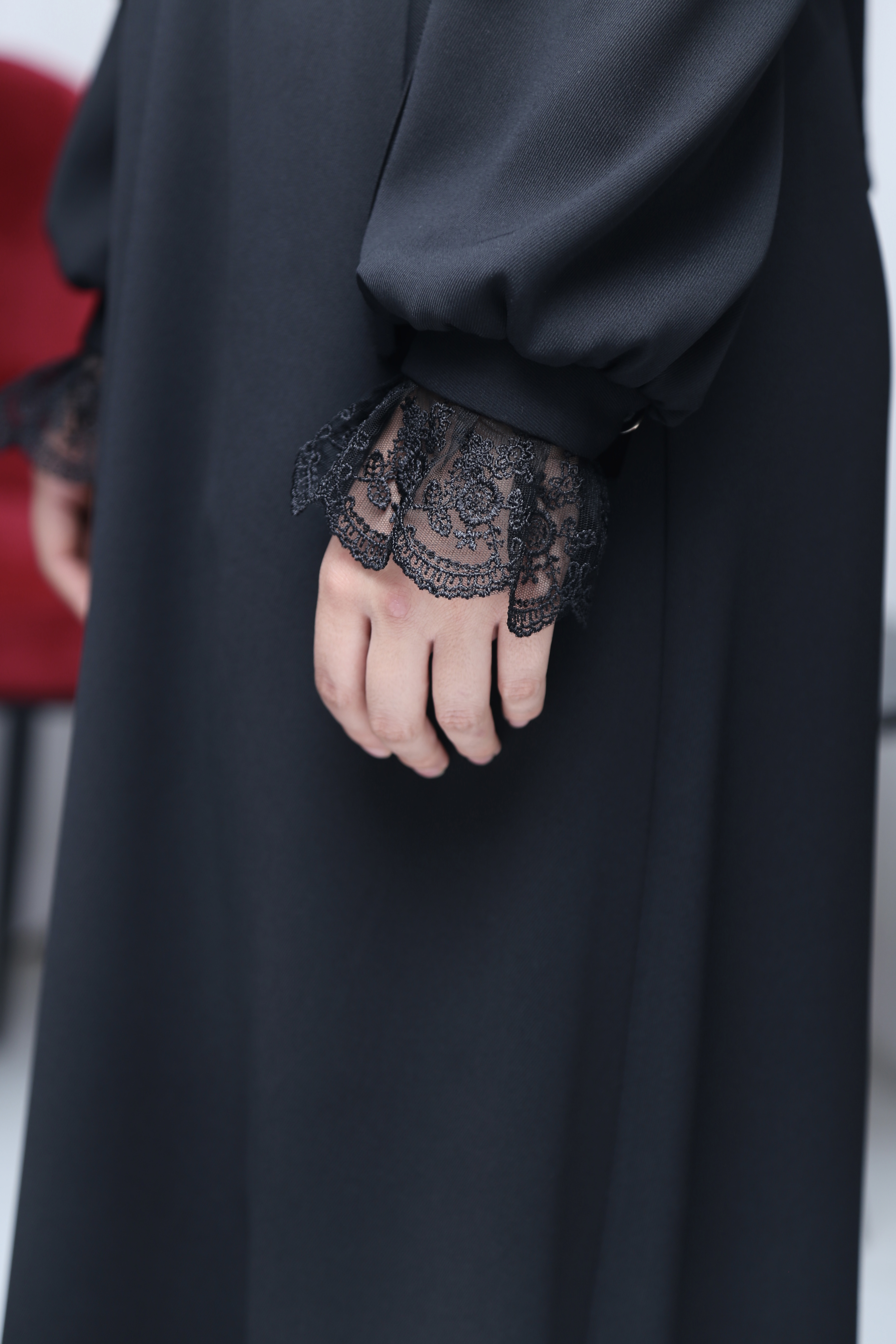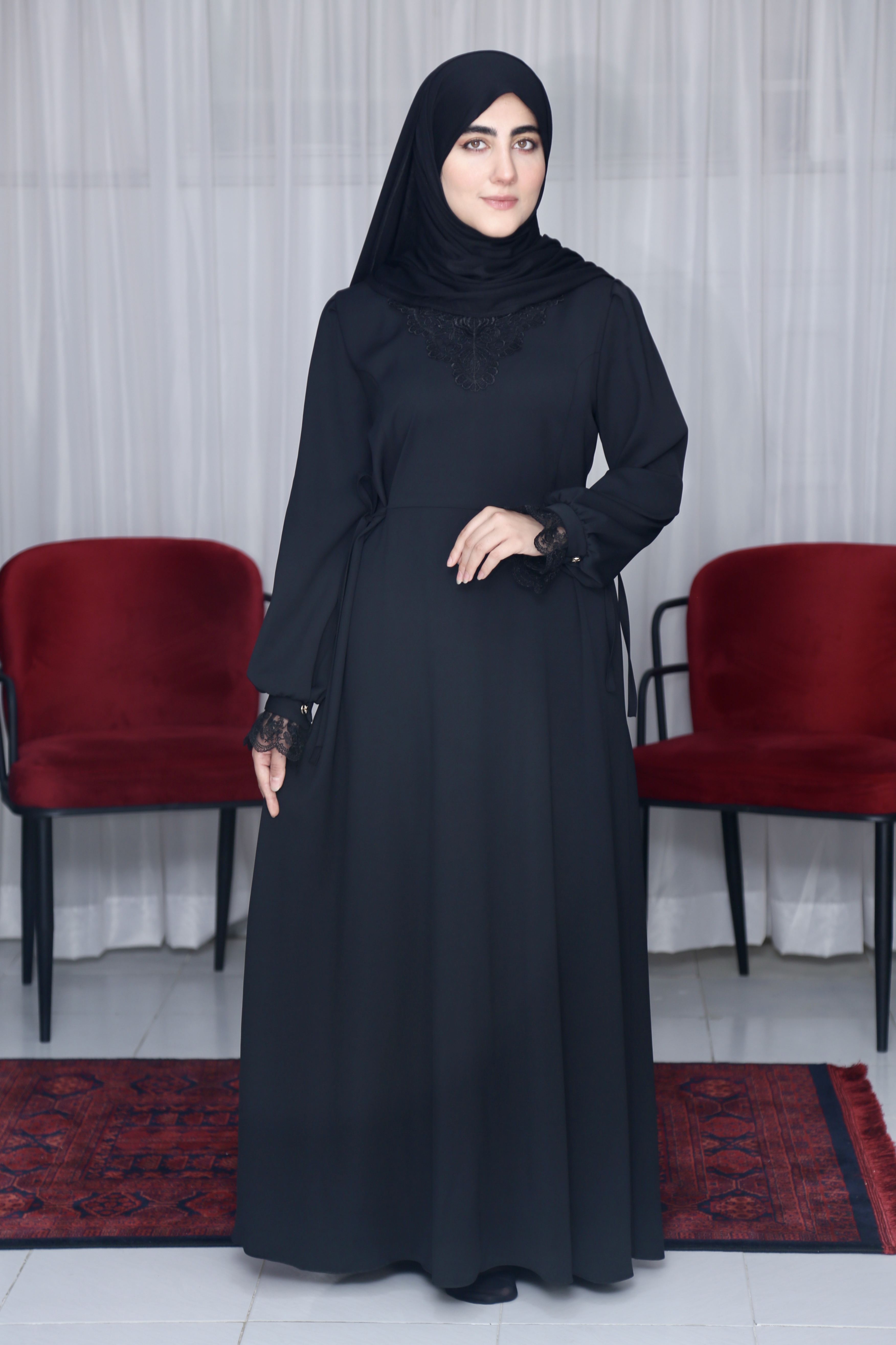 عبا جیران پارچه کرپ درجه یک مجلسی مچ و یقه دانتل سایز ۱ « ۳۸ تا ۴۲ » سایز ۲ « ۴۴ تا ۵۰ » دو طرف عبا بند داره که میتونید مطابق سایزتون تنظیم کنید از پشت زیپ بلند داره مچ دکمه دار قد ۱۴۰