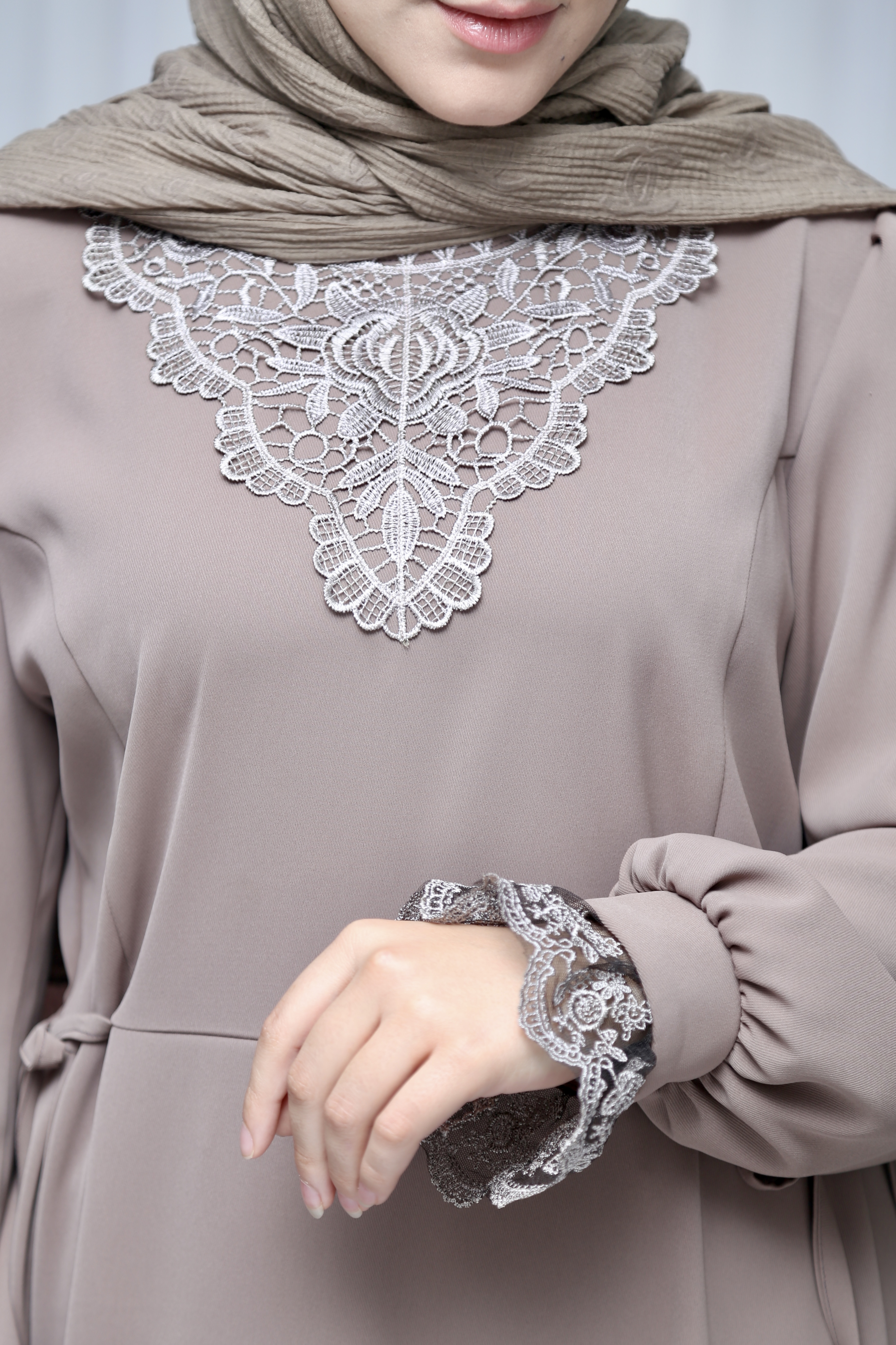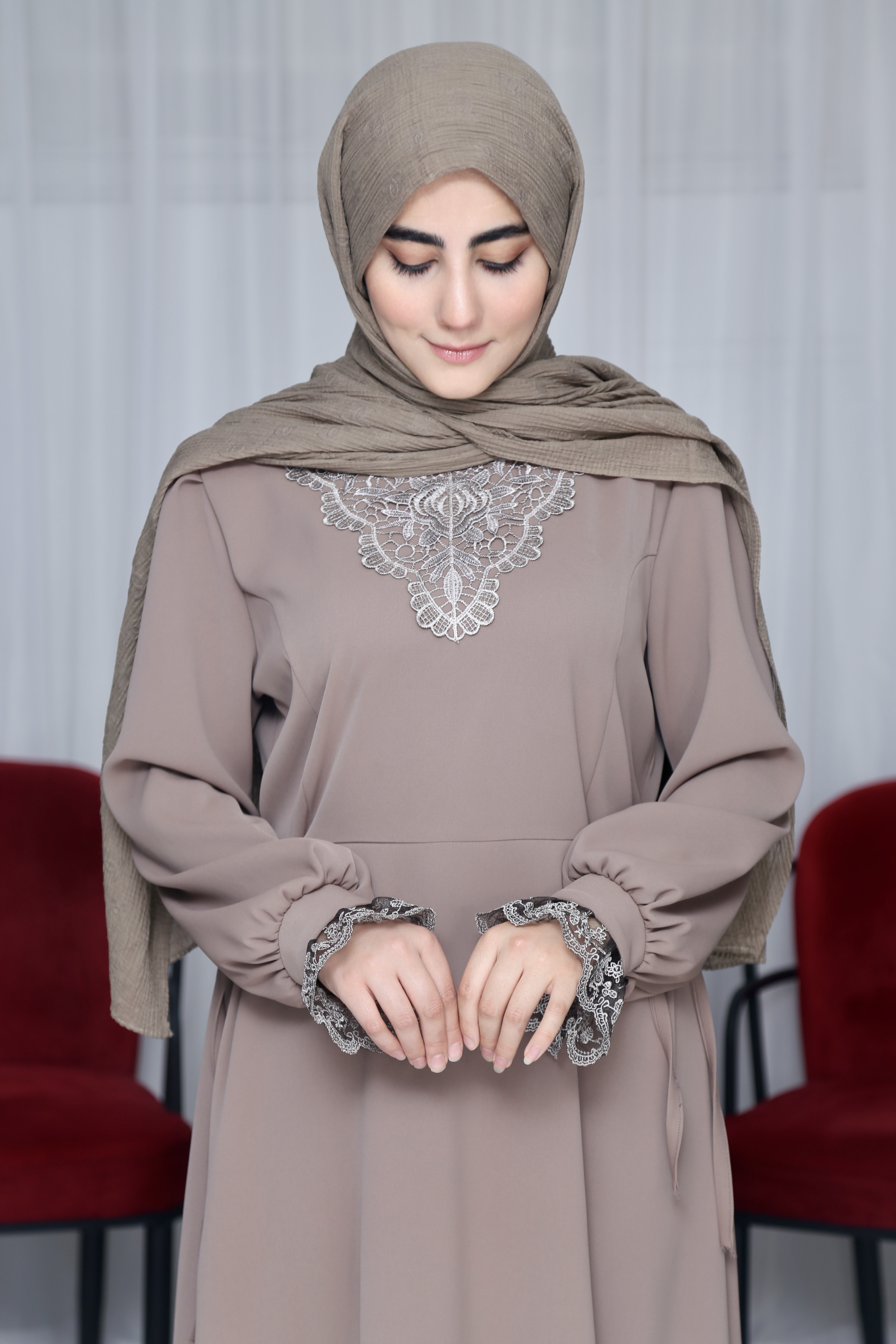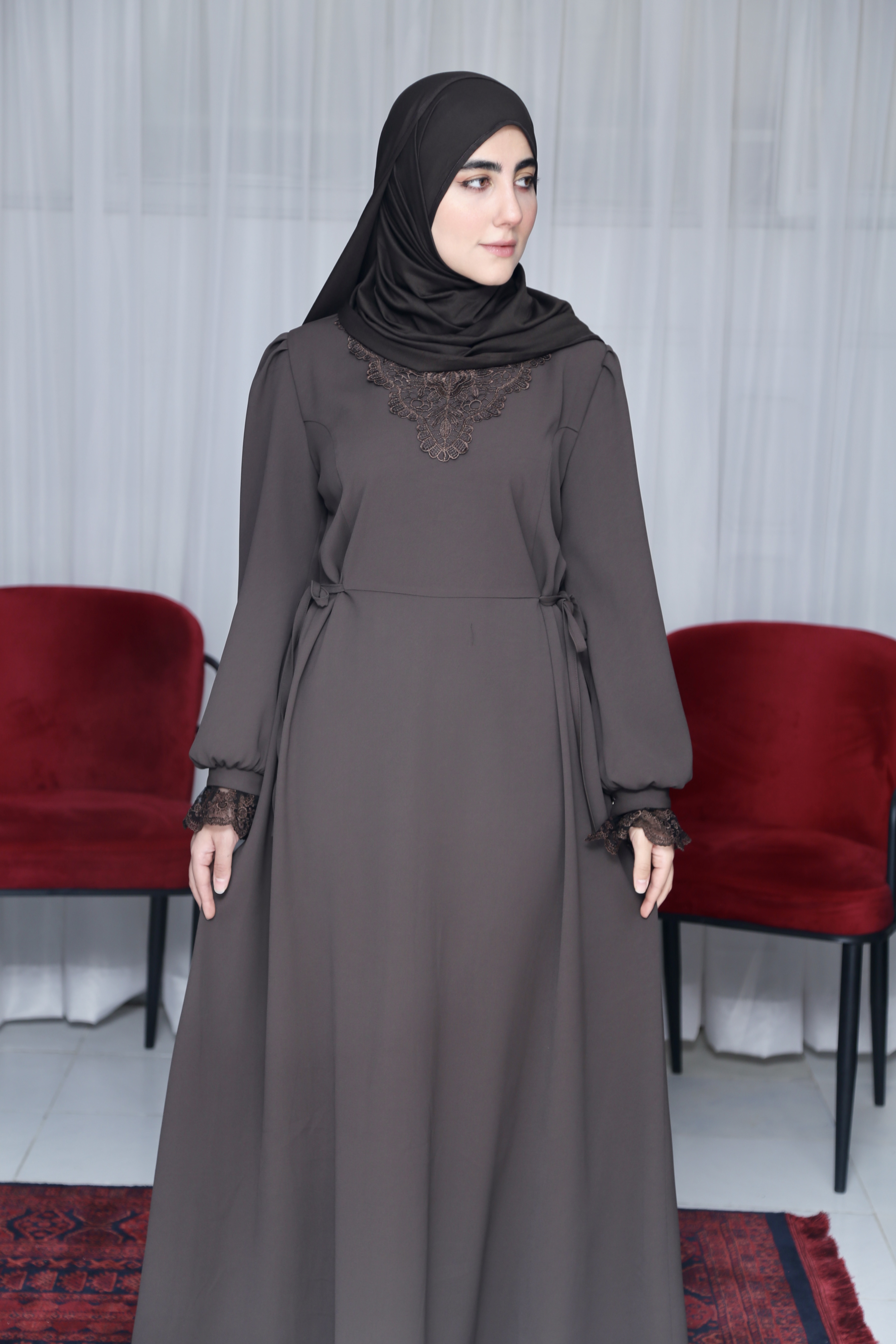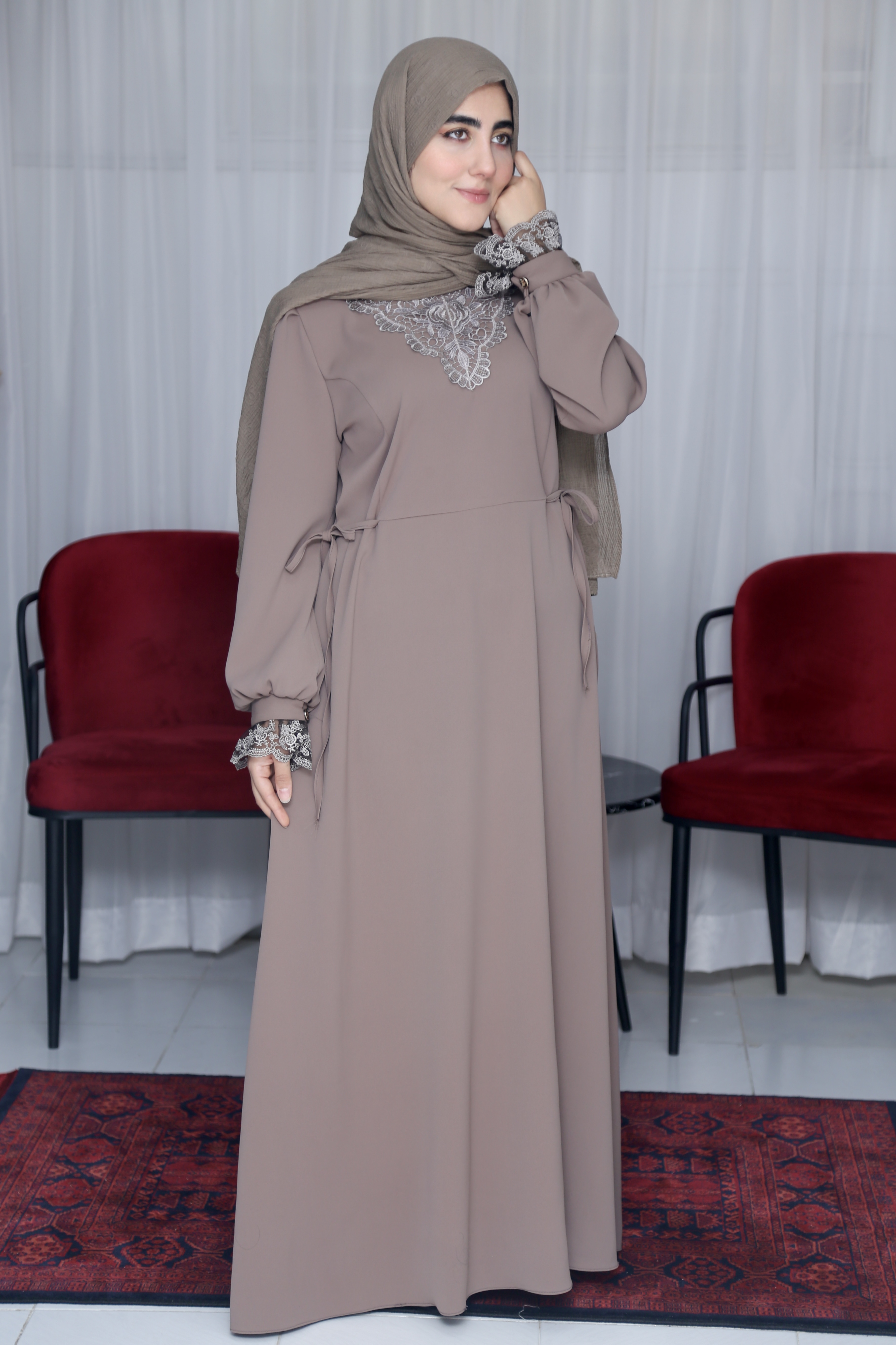 عبا جیران پارچه کرپ درجه یک مجلسی مچ و یقه دانتل سایز ۱ « ۳۸ تا ۴۲ » سایز ۲ « ۴۴ تا ۵۰ » دو طرف عبا بند داره که میتونید مطابق سایزتون تنظیم کنید از پشت زیپ بلند داره مچ دکمه دار قد ۱۴۰