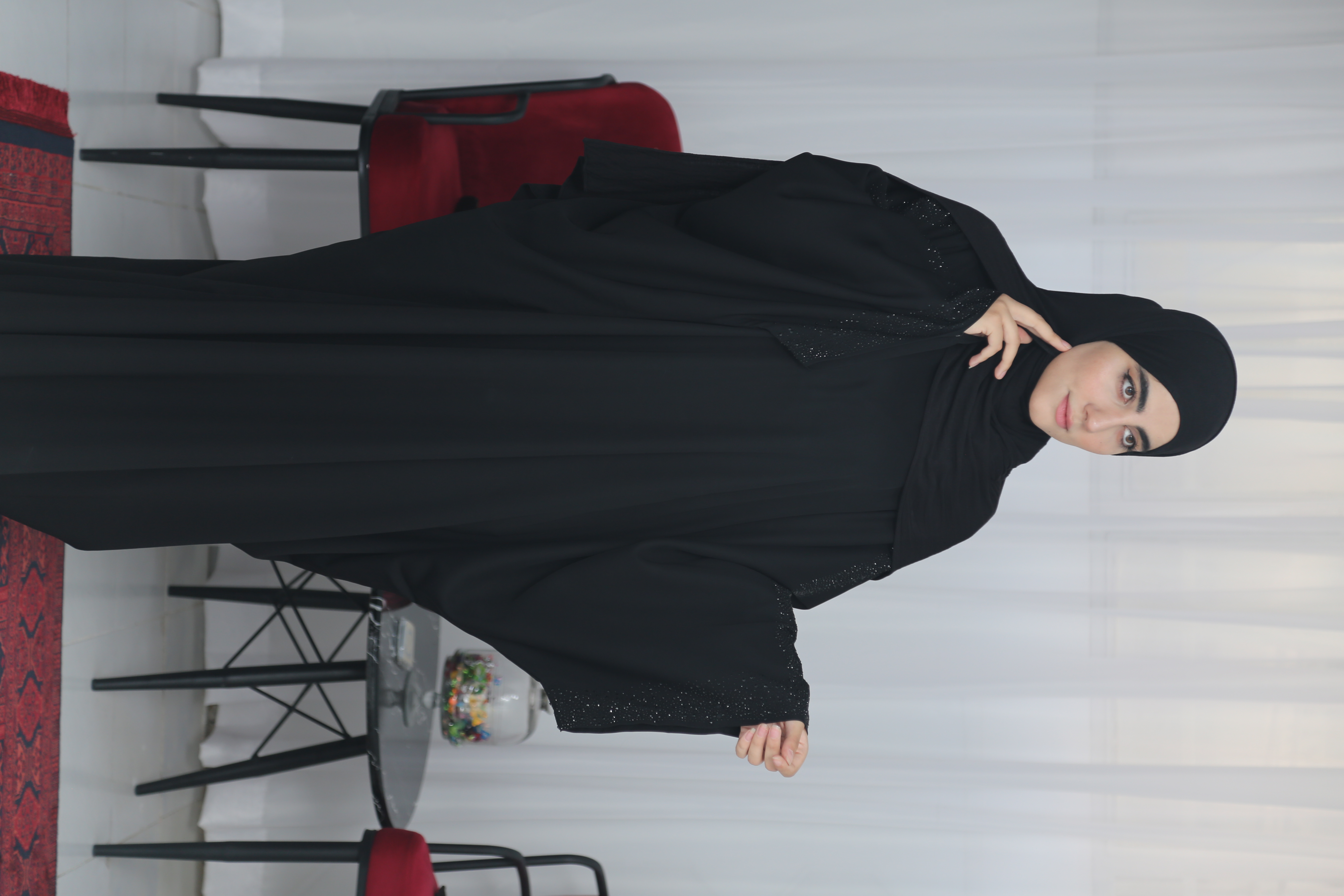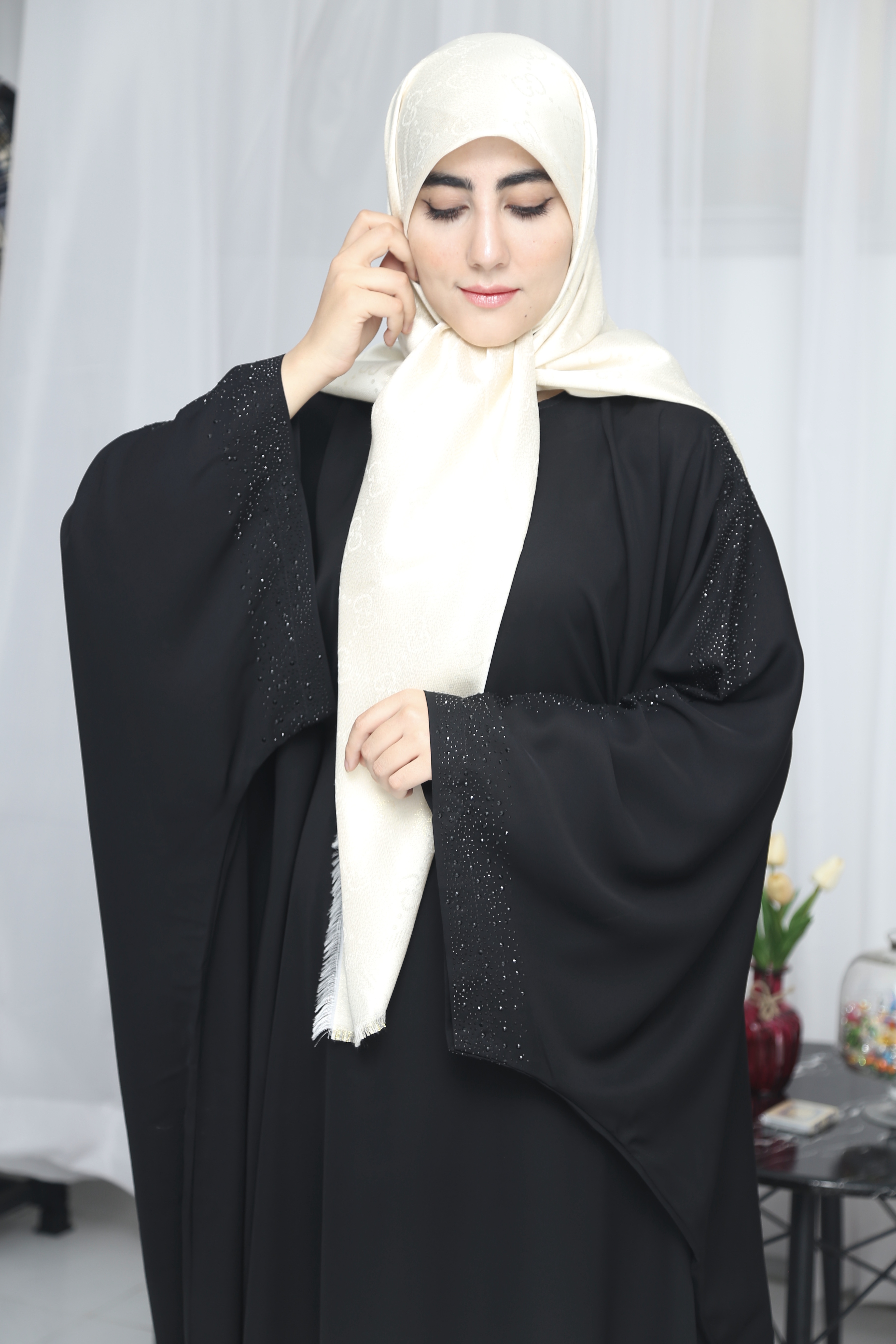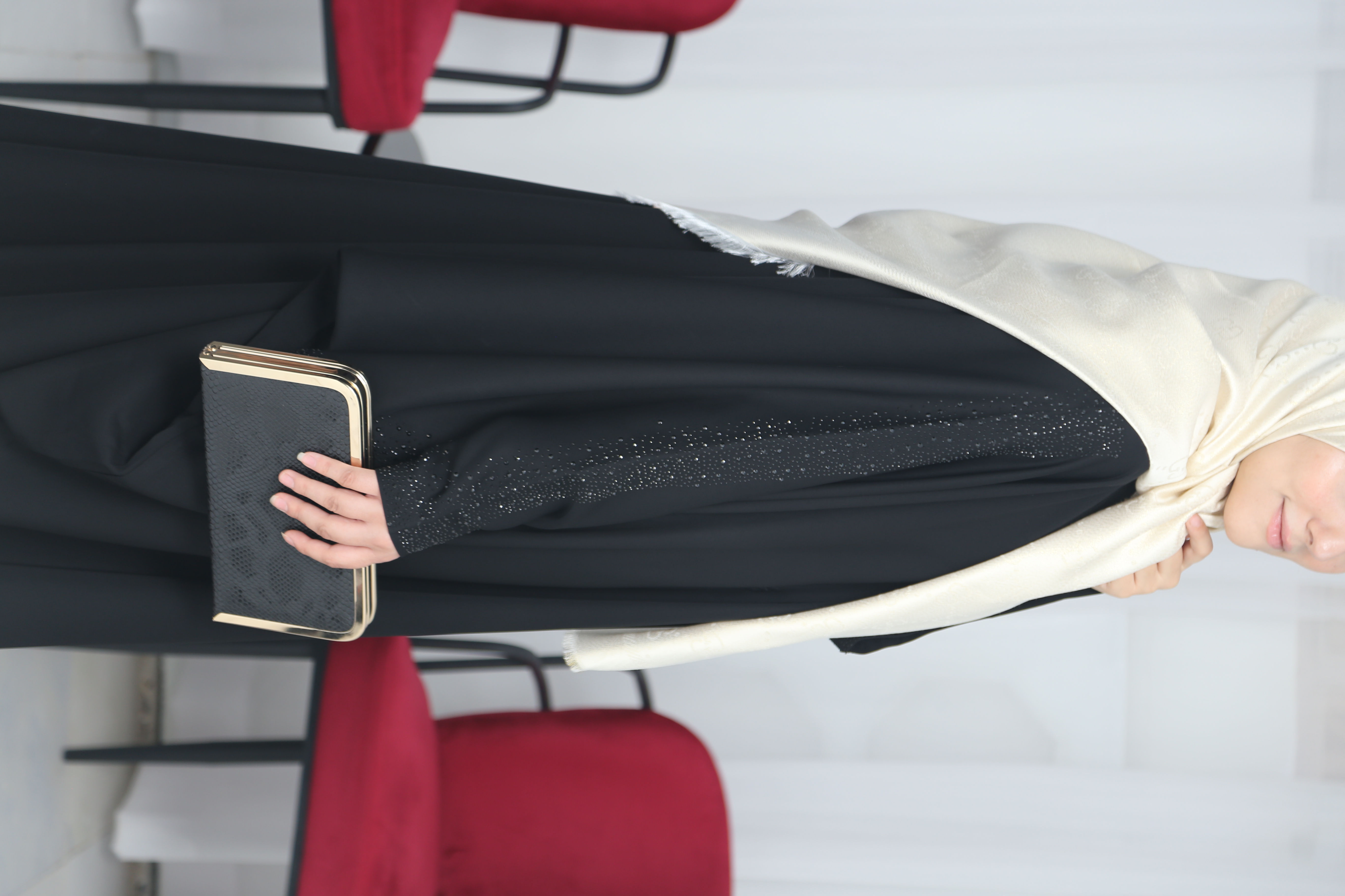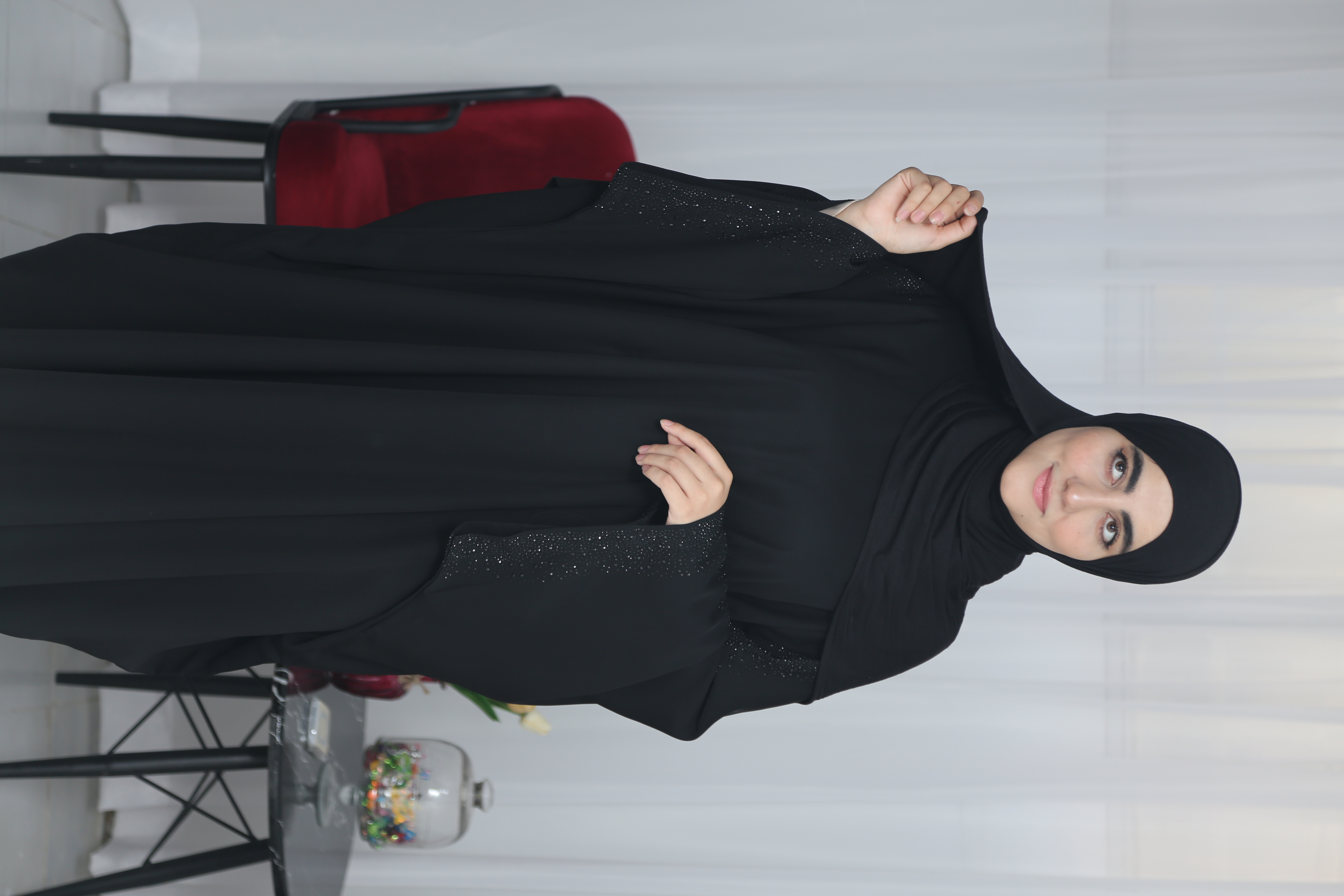 عبا نگین با پارچه سوپر ندا درجه یک نگین کاری شده که نگین های مقاومی داره مناسب استفاده روزمره و مهمانی بند تنظیم داره داخل آستین دکمه داره که آستین عبا بالا نره