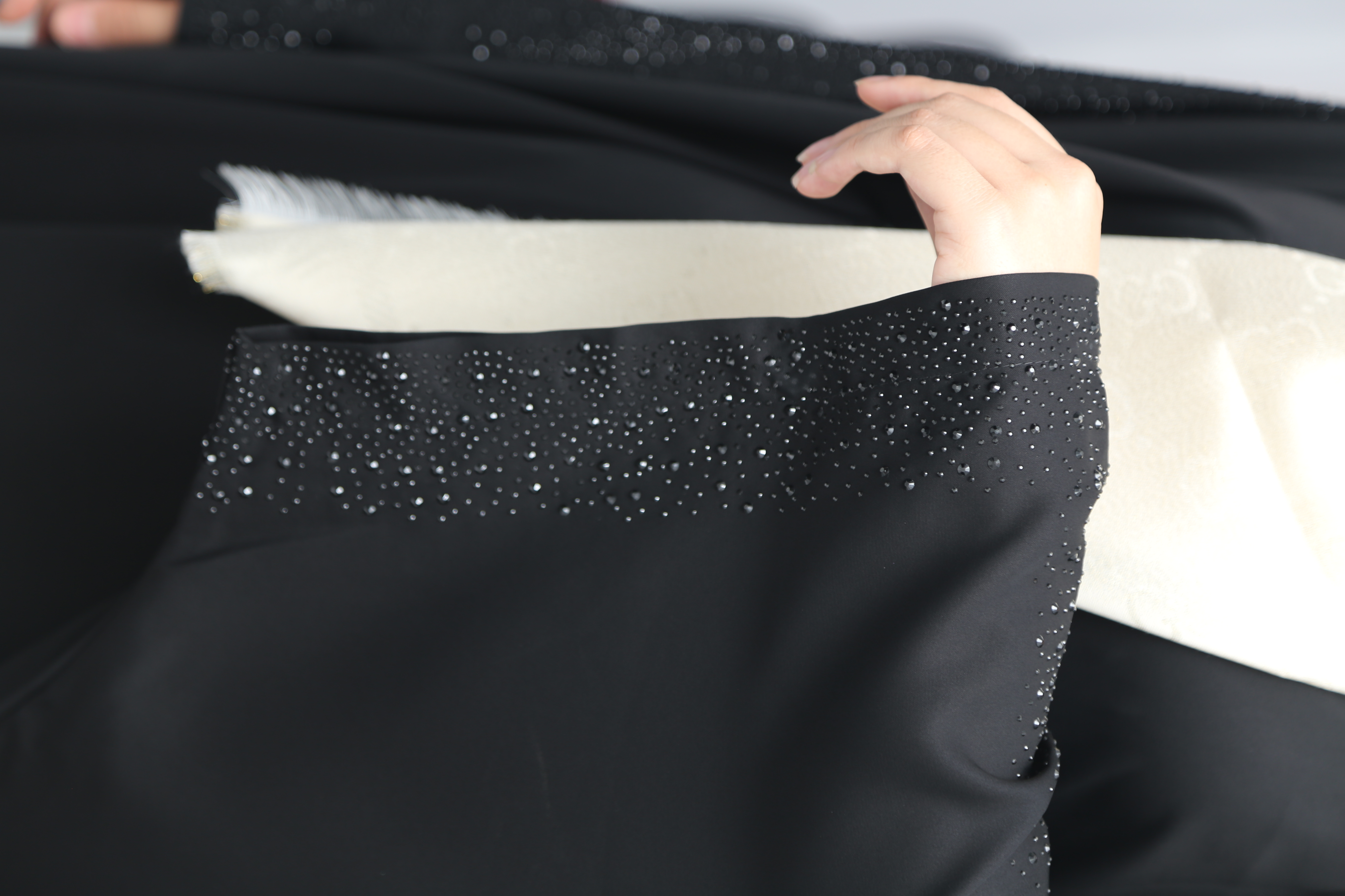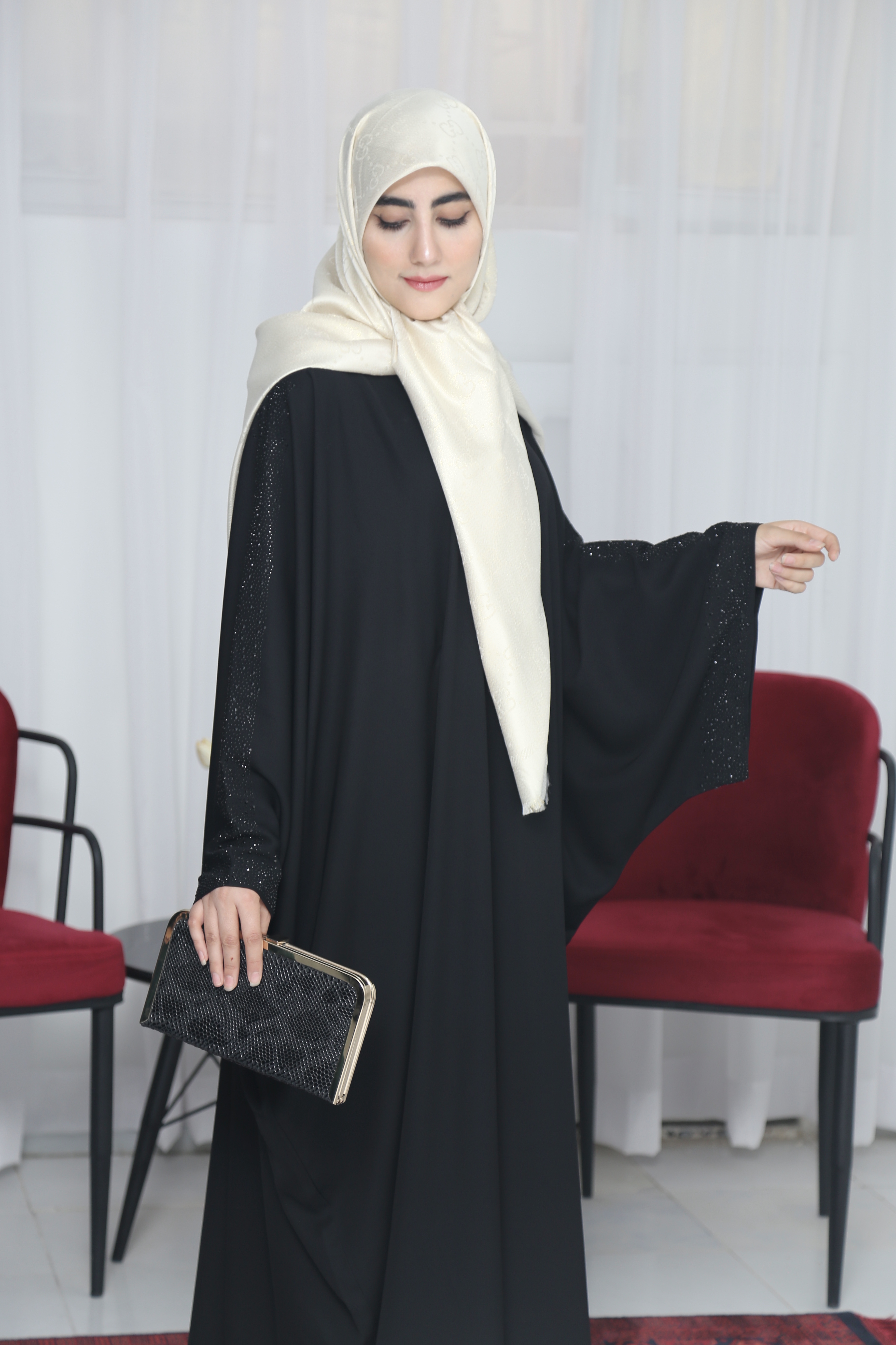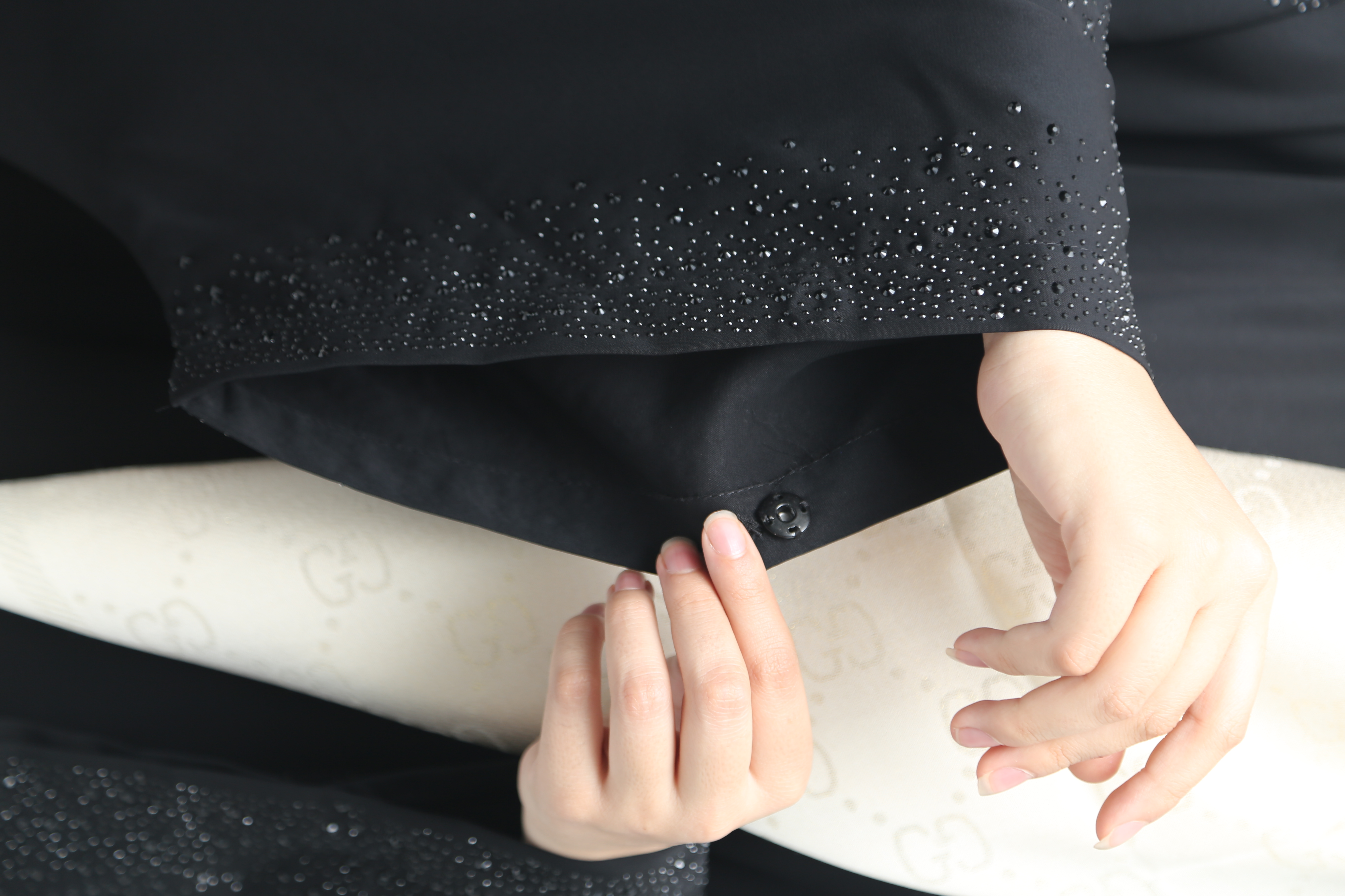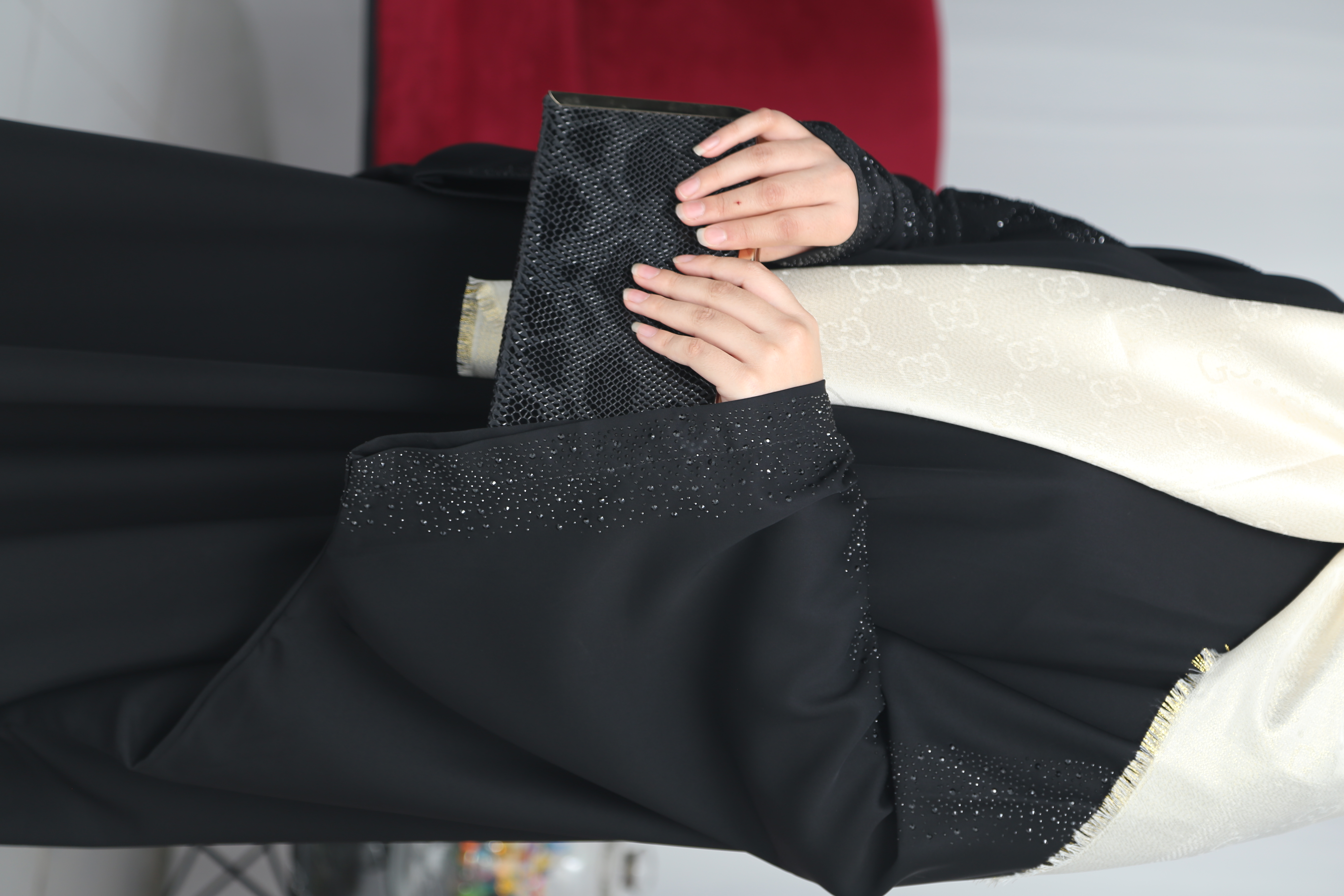 عبا نگین با پارچه سوپر ندا درجه یک نگین کاری شده که نگین های مقاومی داره مناسب استفاده روزمره و مهمانی بند تنظیم داره داخل آستین دکمه داره که آستین عبا بالا نره