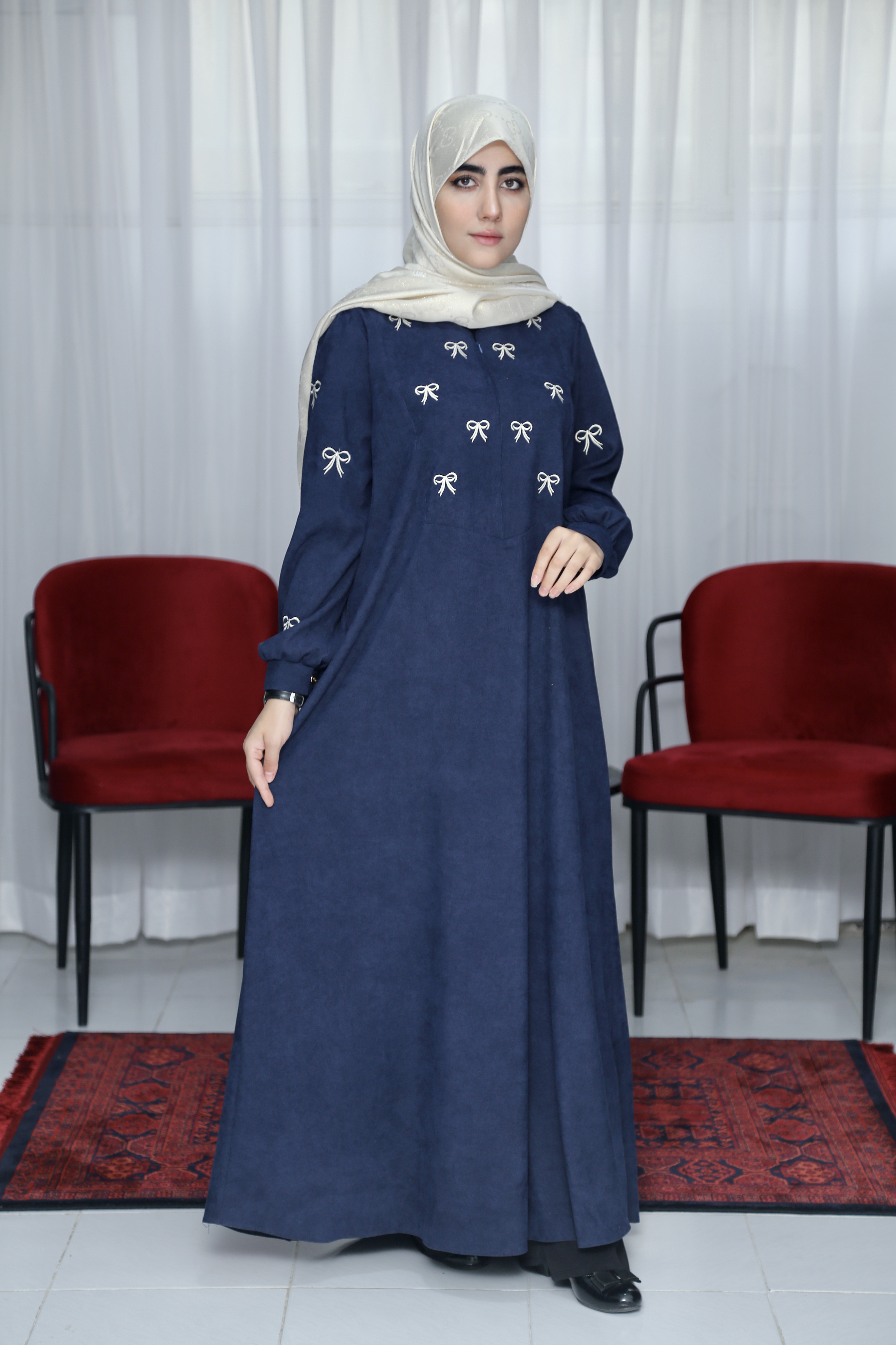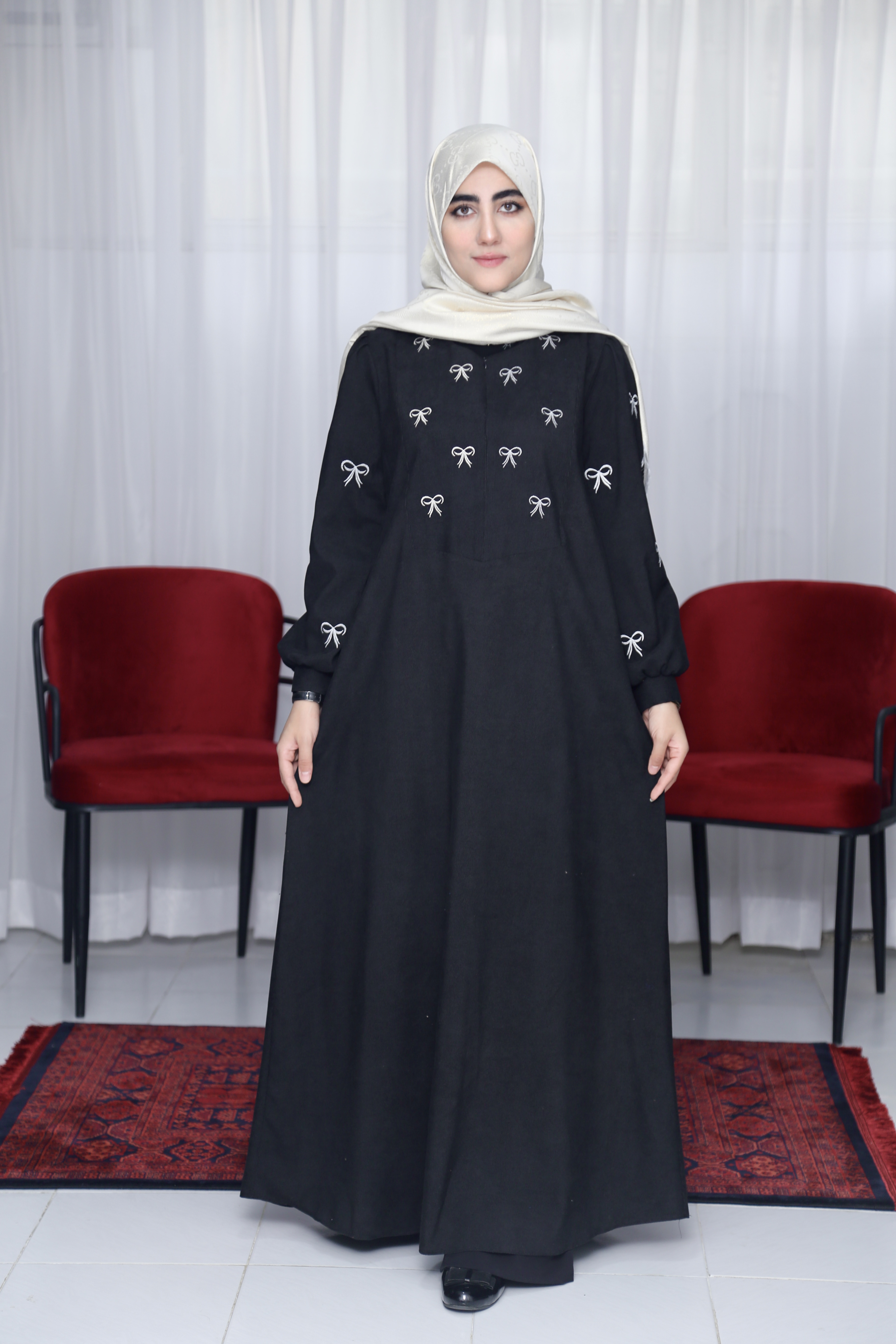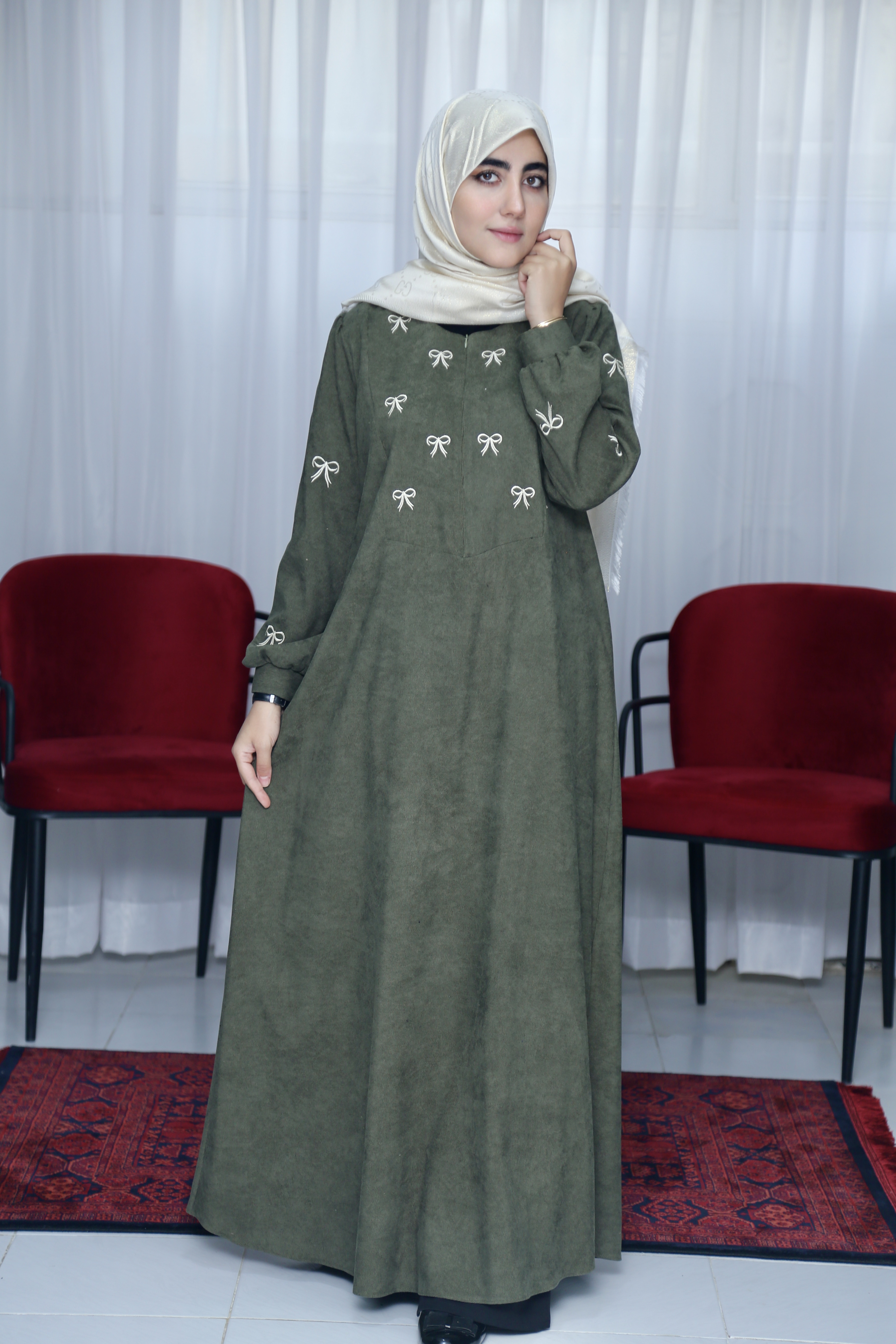 عبا پاپیون پارچه مخمل کبریتی مناسب پاییز و زمستان زیپ بلند دارد و مناسب شیردهی بند تنظیم دارد گلدوزی شده