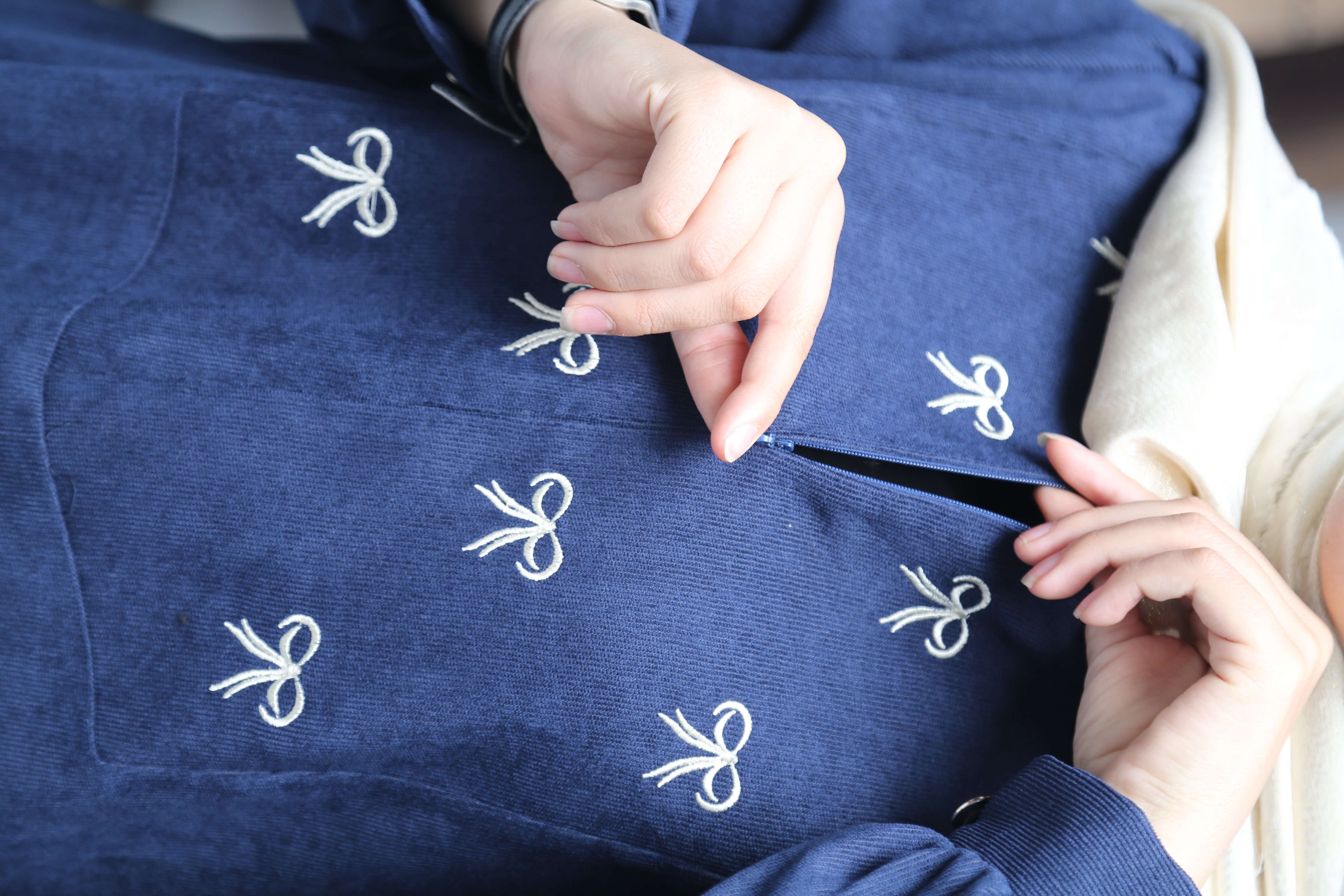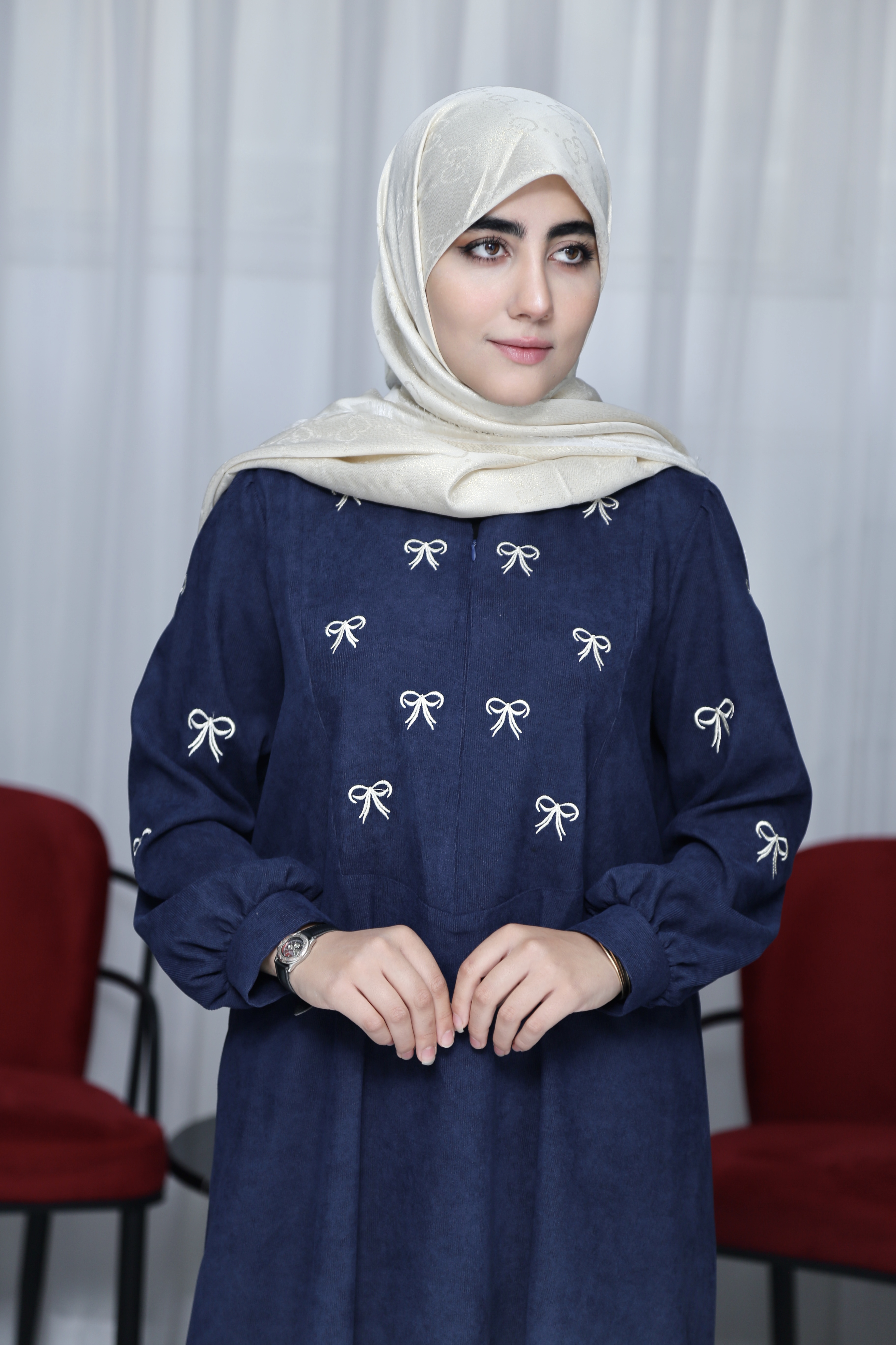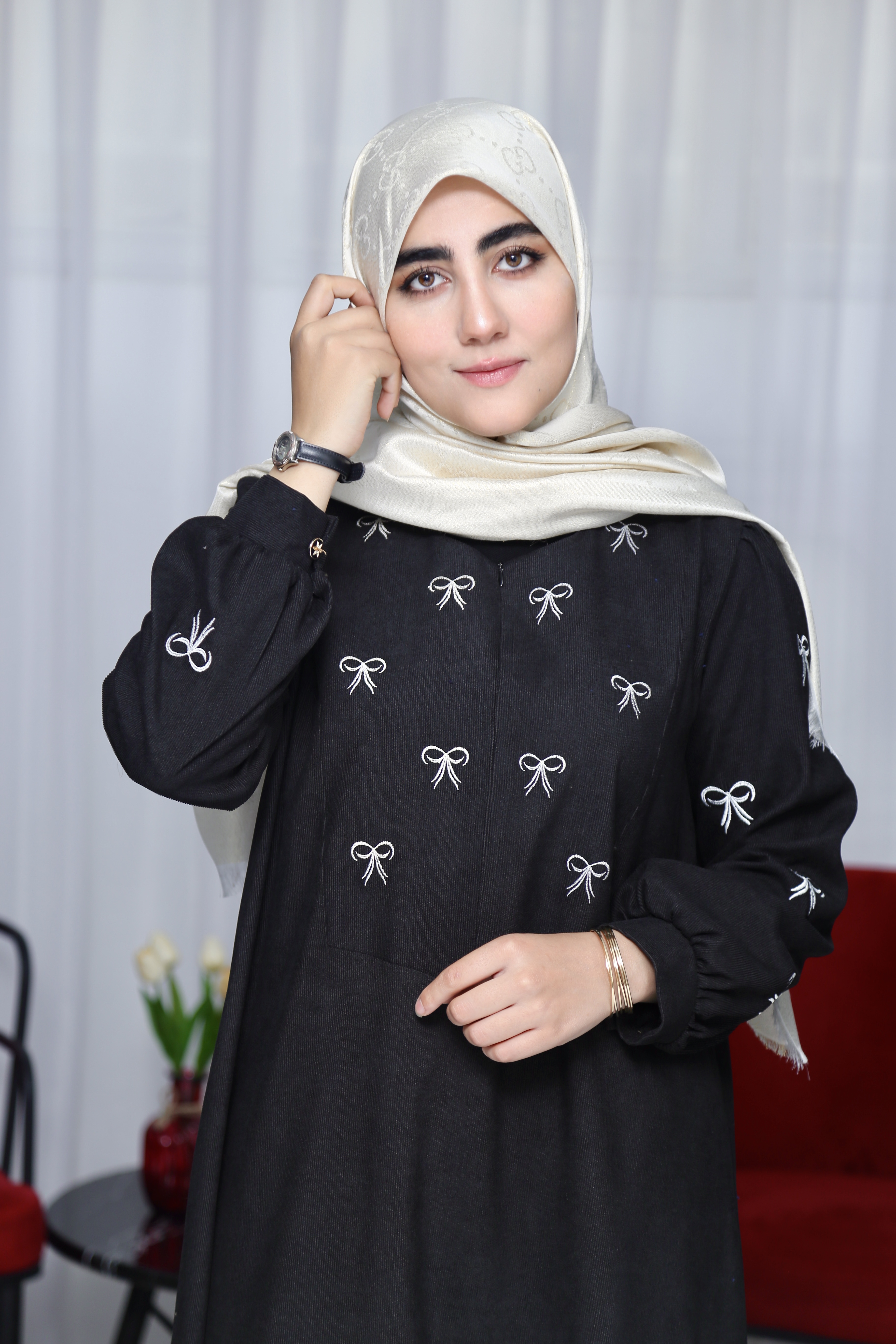 عبا پاپیون پارچه مخمل کبریتی مناسب پاییز و زمستان زیپ بلند دارد و مناسب شیردهی بند تنظیم دارد گلدوزی شده